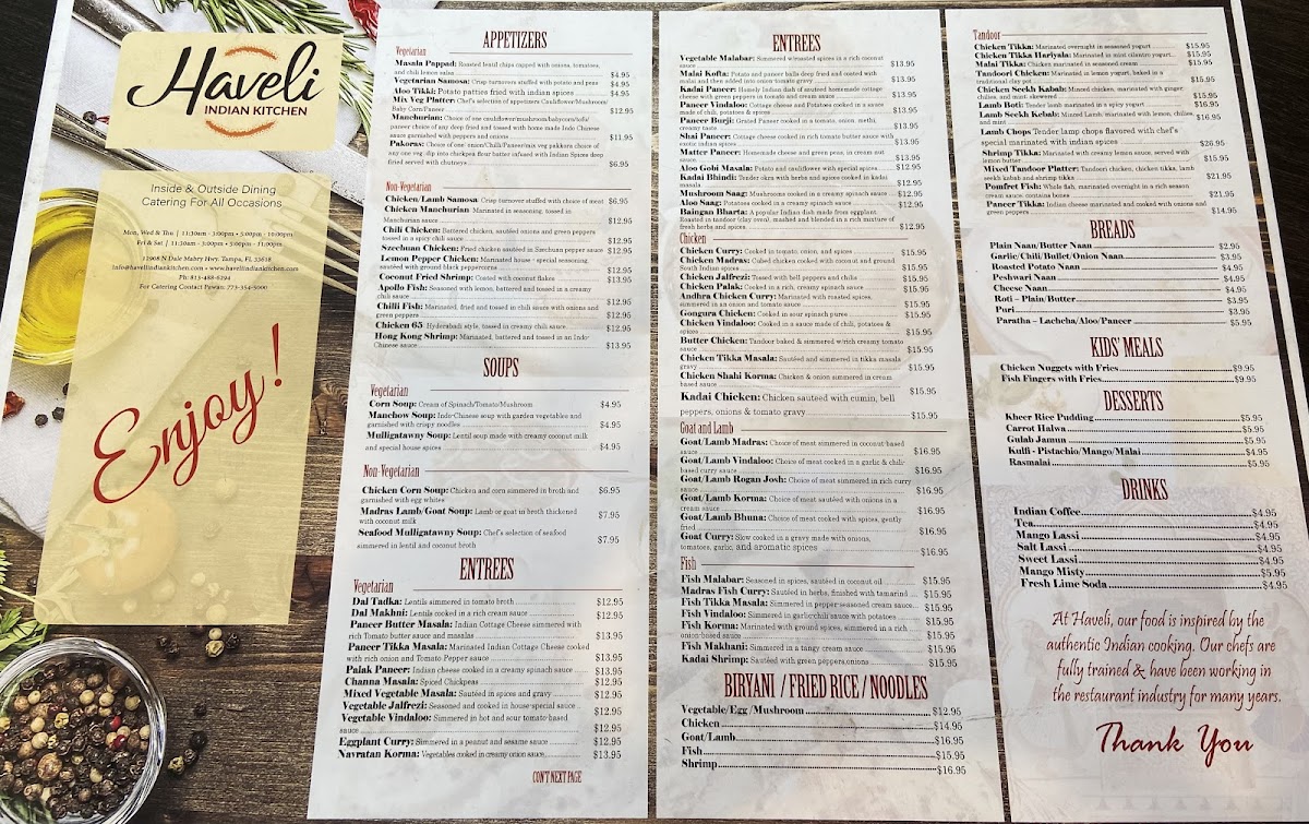 Welcome to Haveli Indian Kitchen, a culinary gem nestled on N Dale Mabry Hwy in Tampa, Florida. This delightful establishment brings you an extraordinary range of authentic Indian flavors that are sure to captivate your palate. Renowned for its incredible curries and fluffy butter naan, Haveli is a favorite among locals and visitors alike, often serving as a pre-show hotspot for those heading to Side Splitters Comedy Club.